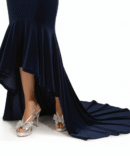 • Alora Dark Red Velvet Heels Crystal Buckle Front ViewDark Red Velvet Platform Heels 8.5cm Net Height